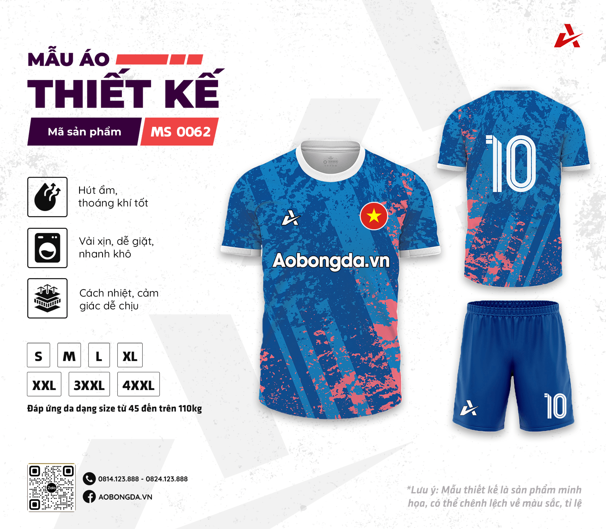 Ngoài ra, Aobongda.vn cam kết bảo đảm chất lượng sản phẩm và dịch vụ chăm sóc khách hàng tốt nhất. Để đặt hàng mẫu áo thiết kế MS0062, hãy gọi hotline 082.993.9999 hoặc truy cập vào website để xem thêm chi tiết. Hãy nhanh tay sở hữu những bộ áo bóng đá chất lượng và nổi bật nhất cho đội của bạn!