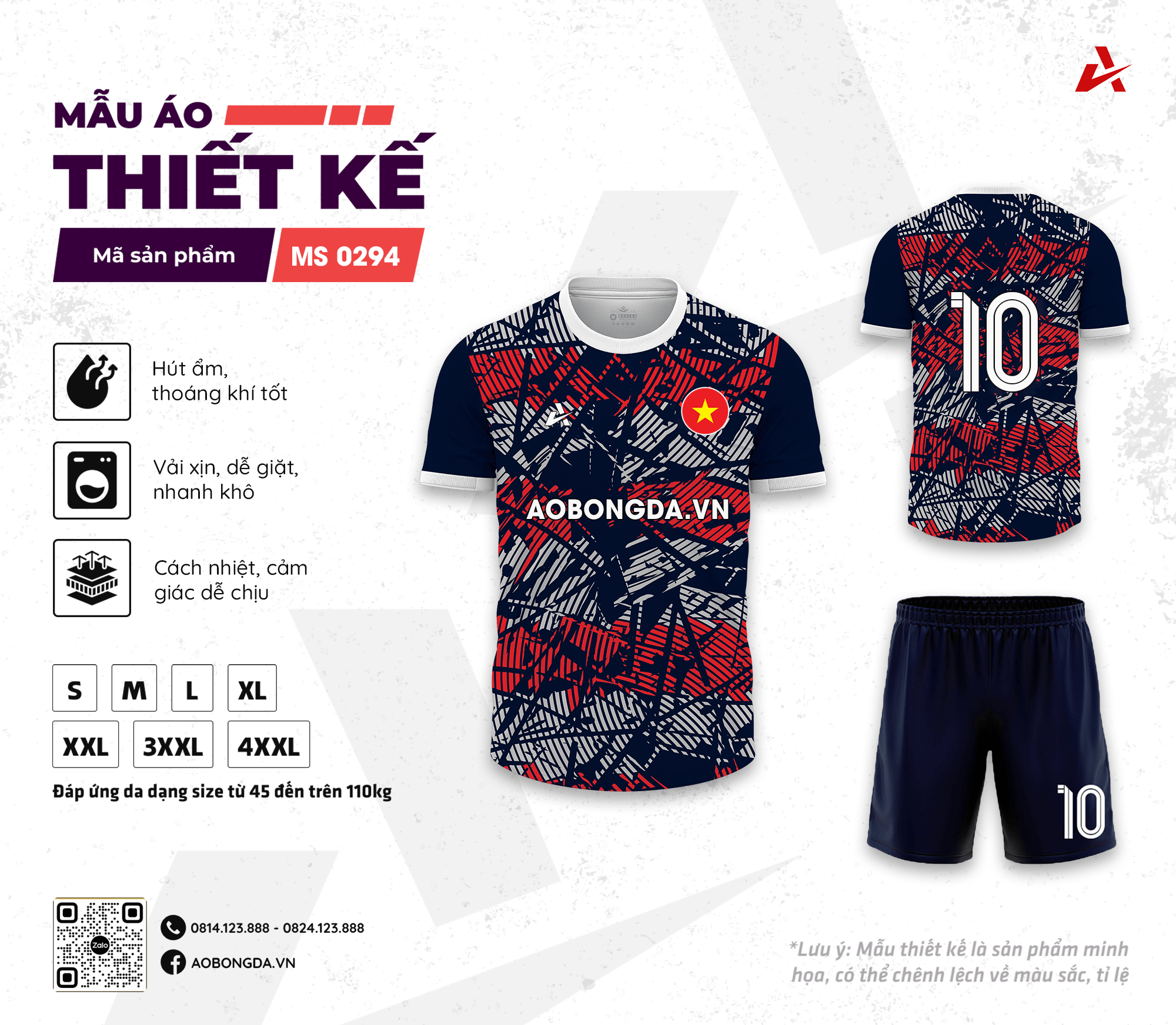 Mẫu áo thiết kế MS0294 là sự kết hợp hoàn hảo giữa phong cách thời trang hiện đại và chất lượng vượt trội. Áo đá bóng có màu đỏ đen chủ đạo, nổi bật với các họa tiết độc đáo, mang đến vẻ ngoài mạnh mẽ và đầy cá tính. Áo bóng đá tự thiết kế được làm từ chất liệu vải cao cấp, thoáng mát và thấm hút mồ hôi tốt, giúp bạn luôn cảm thấy thoải mái trong mọi hoạt động.